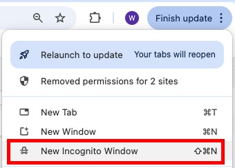 If you’re using Bing or Microsoft Edge, click the three circles in the top right corner of the screen and choose ‘New InPrivate Window’.